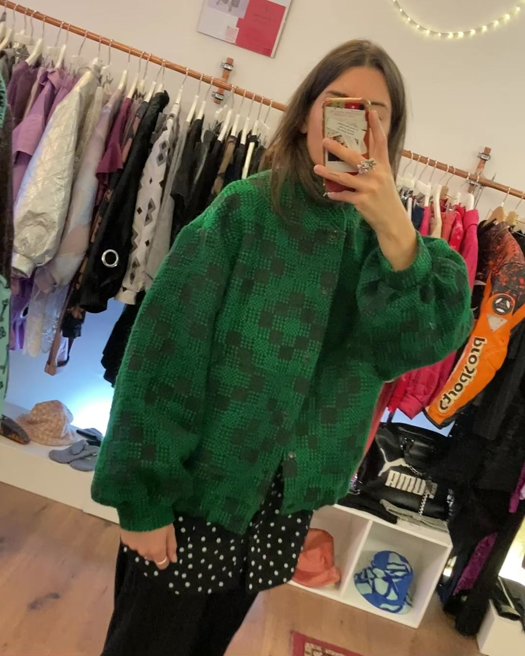 - Fabric: Dead stock green and black wool fabric